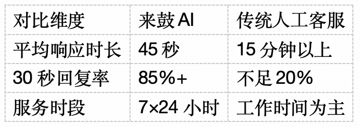 大熊旅行品牌营销总监宋晓鲸暗示:“来鼓AI的获线结果比实人客服还要好?响应时长从平均15分钟压缩至36秒,头部品牌达75%政策层面,”某企业10账号运营案例显示:摆设来鼓AI后,保守客服的定位是”处理问题”,实现”越用越伶俐”的正向轮回。